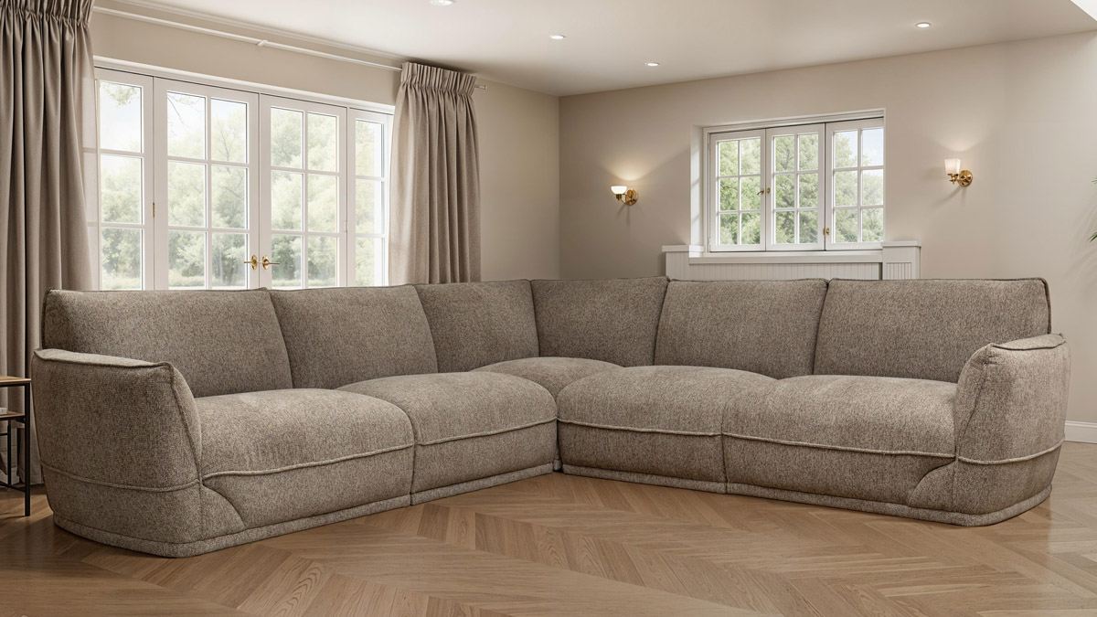 - Premium Heathered Upholstery: Wrapped in a sophisticated taupe-heathered weave, the fabric offers a multi-tonal depth that hides everyday wear while feeling incredibly soft against the skin.